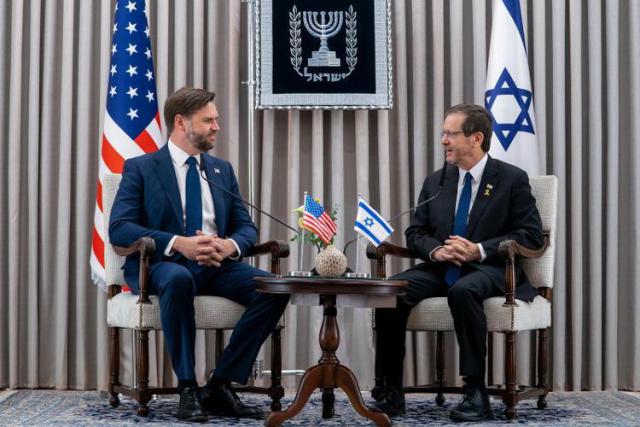 10 月 22 日,以色列耶路撒冷,万斯与以色列总统赫尔佐格会面。来源:视觉中国