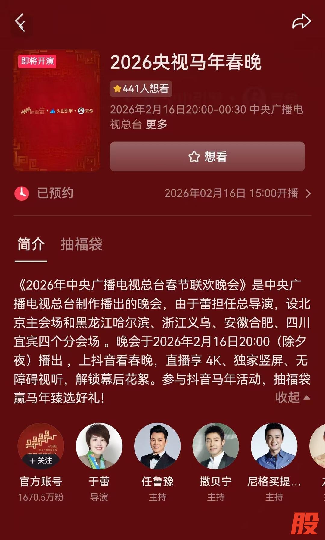 2月5日,有网友发现,抖音央视春晚的页面上显示,总导演为于蕾。红星新闻记者从知情人士处获悉,本届春晚依旧由于蕾担任总导演,这也是她连续第四年执掌春晚导筒。