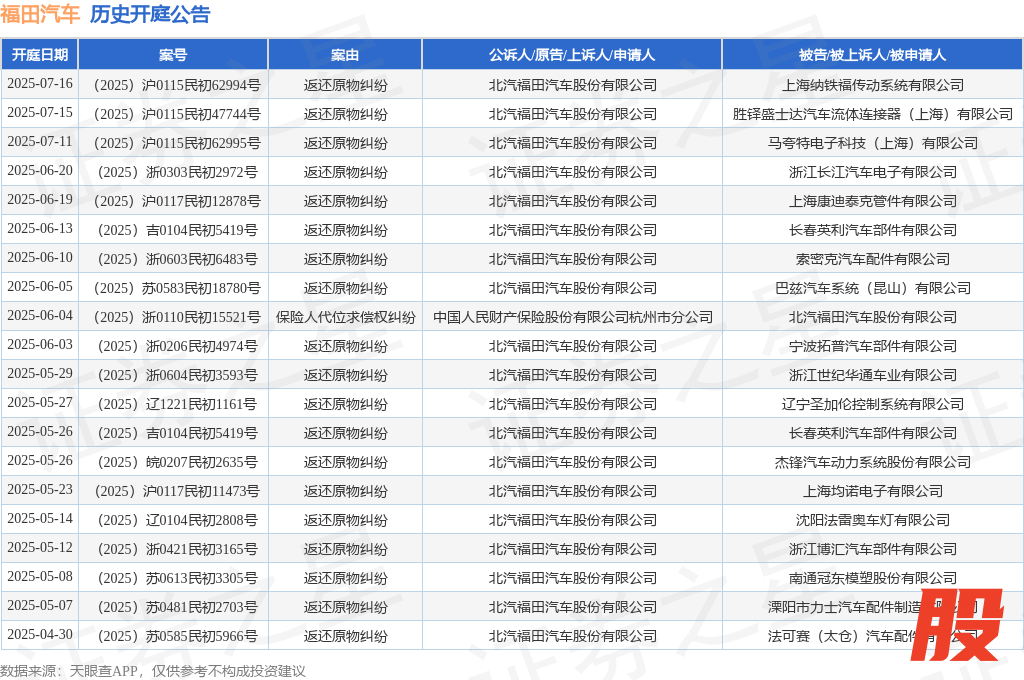 本站消息蜂窝配资蜂窝配资,根据天眼查APP显示,近日公布了一则北汽福田汽车股份有限公司作为原告/上诉人的开庭公告,详细内容如下: